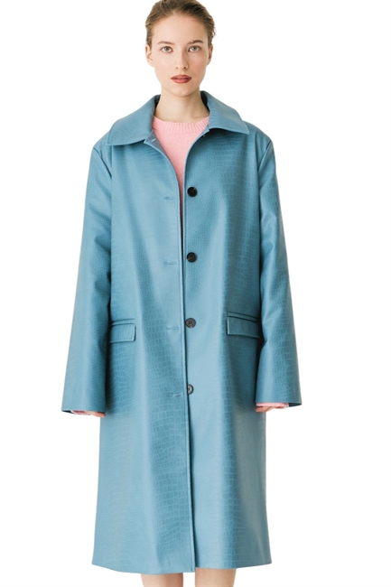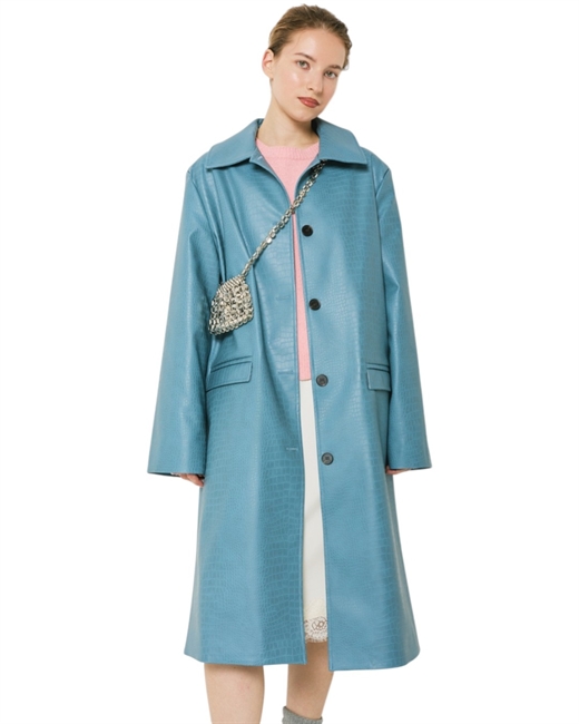 Тренч удлиненный из экокожи с тиснением