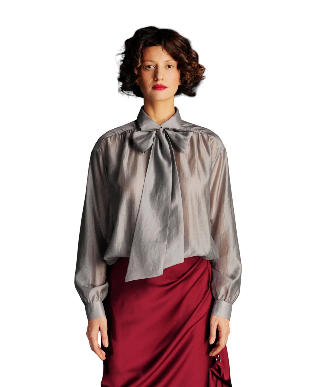 Блузка из вуали свободного силуэта, со съемным шарфом.