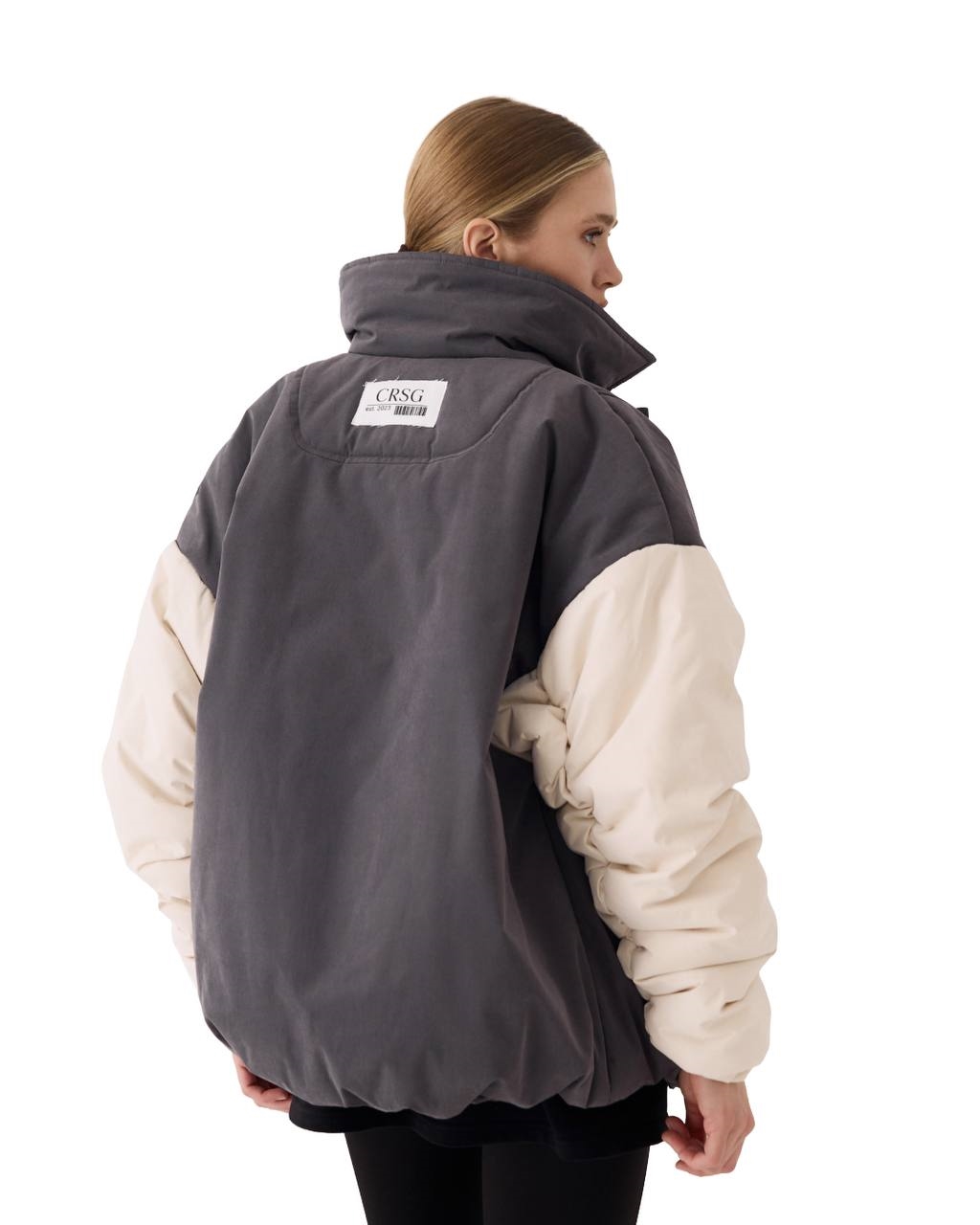 Бомбер из мембранной плащевой ткани с бархатным эффектом (водооталкивающая и ветрозащитная) с отложным воротником, карманами боковыми прорезными с листочкой, металлической молнией 60 см и планкой на кнопках. Рукава собраны на резинке. Спущенное плечо. По низу изделия шляпная резинка с фиксаторами, которая позволяет регулировать бомбер в обхватах.