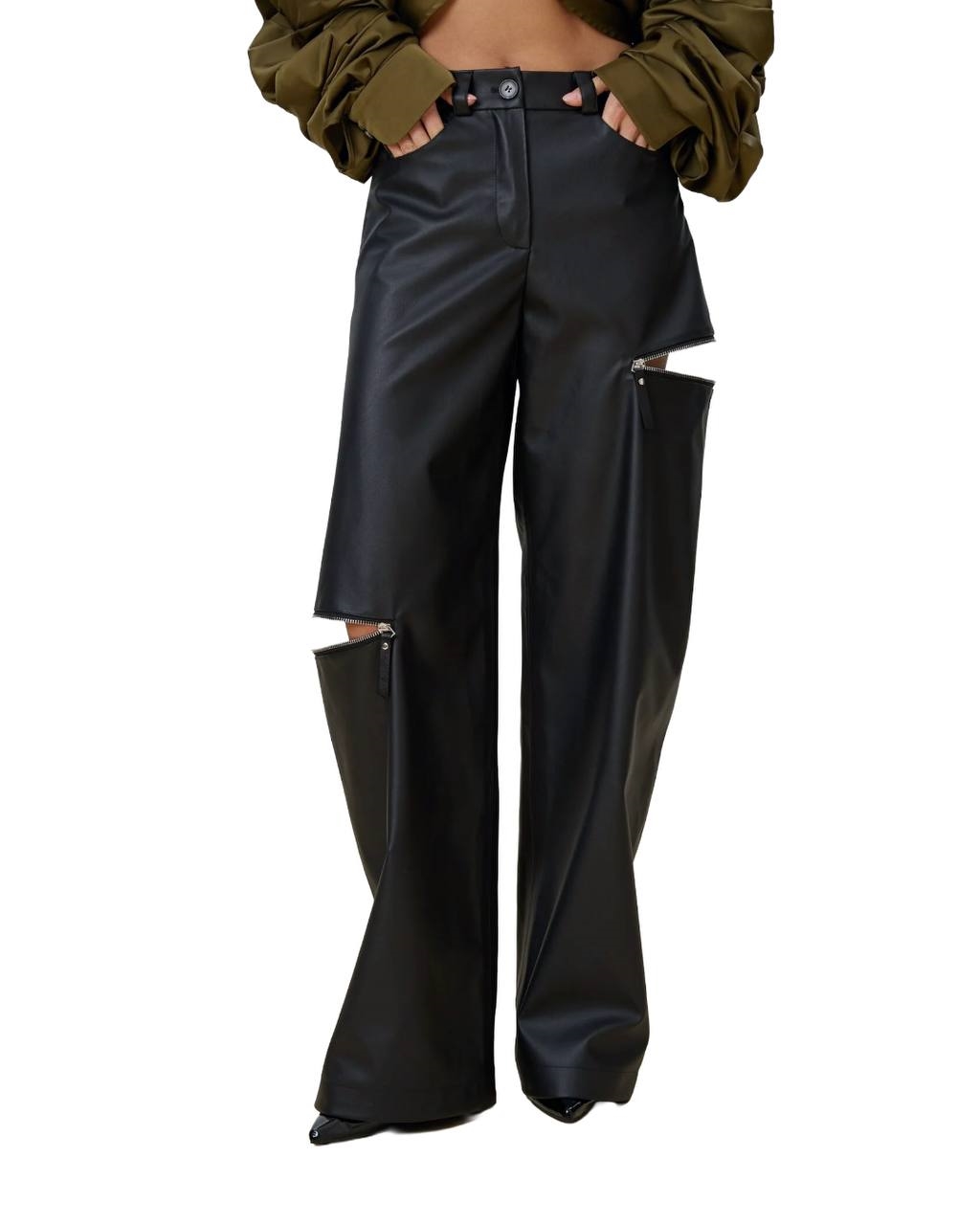 Широкие брюки из высококачественной эко-кожи, которая очень приятна на ощупь и не подвергается химической обработке, вредной для кожи.