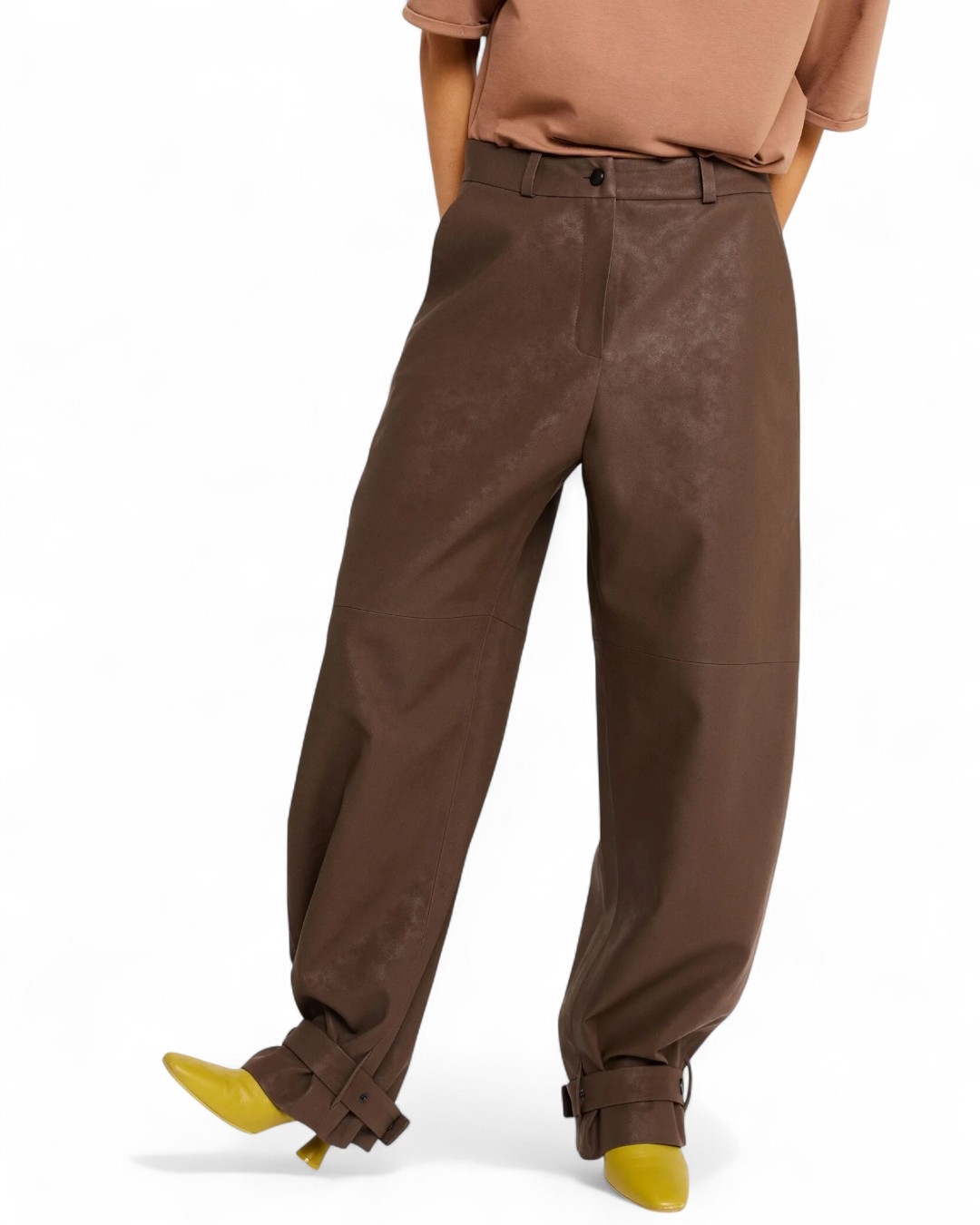 Эти брюки автоматически попадают в ваш вишлист – ведь это база для самых стильных аутфитов. Отдельного внимания заслуживают мини-ремни на каждой брючине – помощники, которые позволяют легко менять силуэт и ширину.