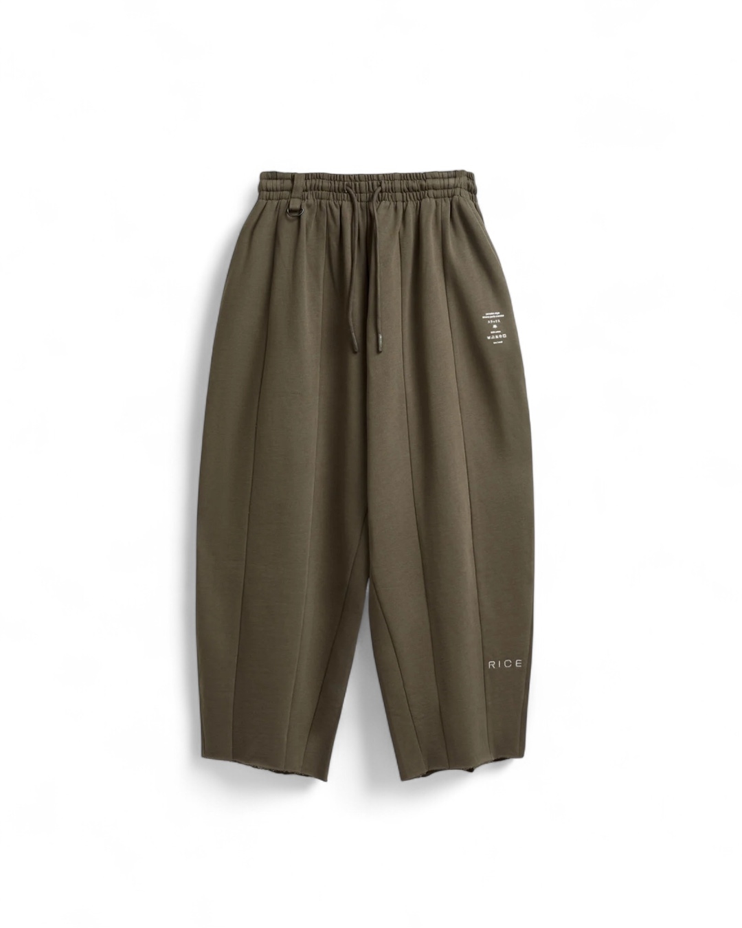 Брюки широкого и расслабленного кроя, два боковых кармана, поясная резинка и шнур для утяжки. На поясе два полукольца для аксессуара. Специальные азиатские кисточки как аксессуар, цепляющиеся за полукольца на поясе, чтобы создать максимальный эффект азиатской принадлежности.