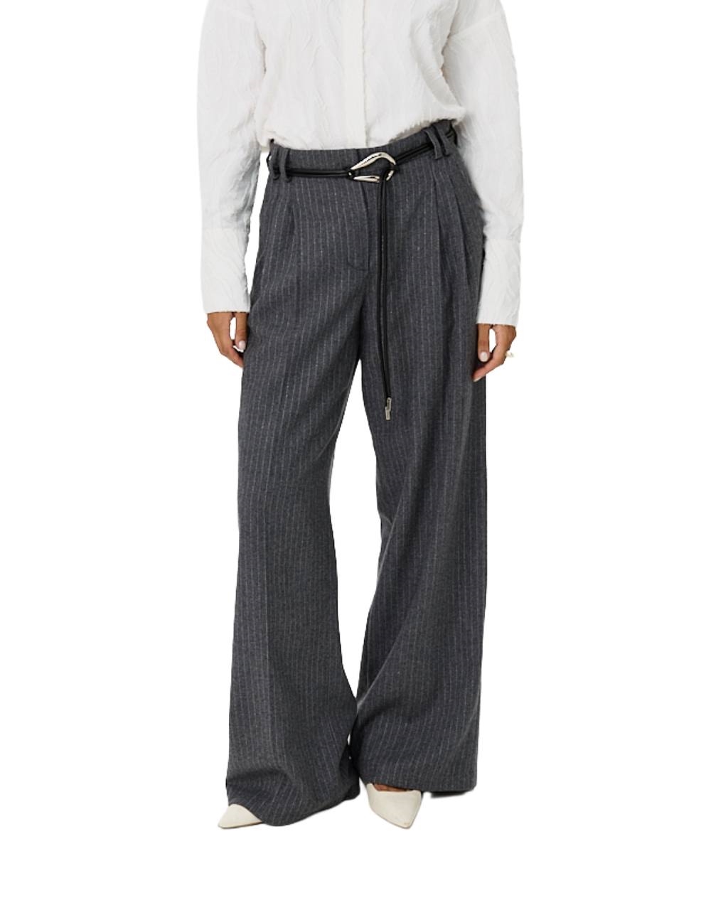 Брюки-палаццо трендовая модель для создания как расслабленных образов, так и строгого офисного дресс-кода. Брюки свободного силуэта, с притачным поясом со шлевками под ремень, карманами в боковых швах и эффектными защипами. Принт тонкая полоска с добавлением люрекса. Комфортная посадка на любой тип фигуры.