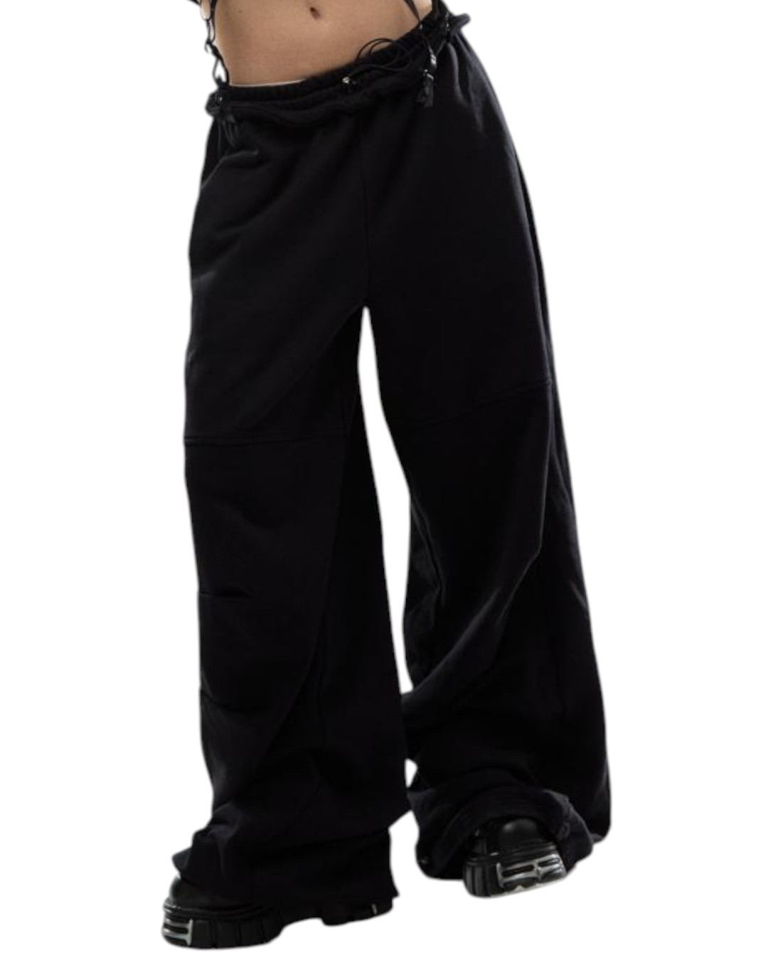 Брюки карго из хлопка с вышивкой на резинках — чёрный минималистичный силуэт без лишних деталей. Акцентная вышивка на резинках добавляет современный штрих, создавая лаконичный и стильный образ.