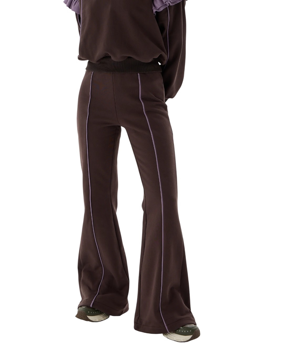 Брюки клёш созданы для того, чтобы подчеркивать красивые женские ноги. Контрастные канты визуально вытягивают формы, а прилегающий силуэт с завышенной талией рассталяет правильные акценты на вашей фигуре.