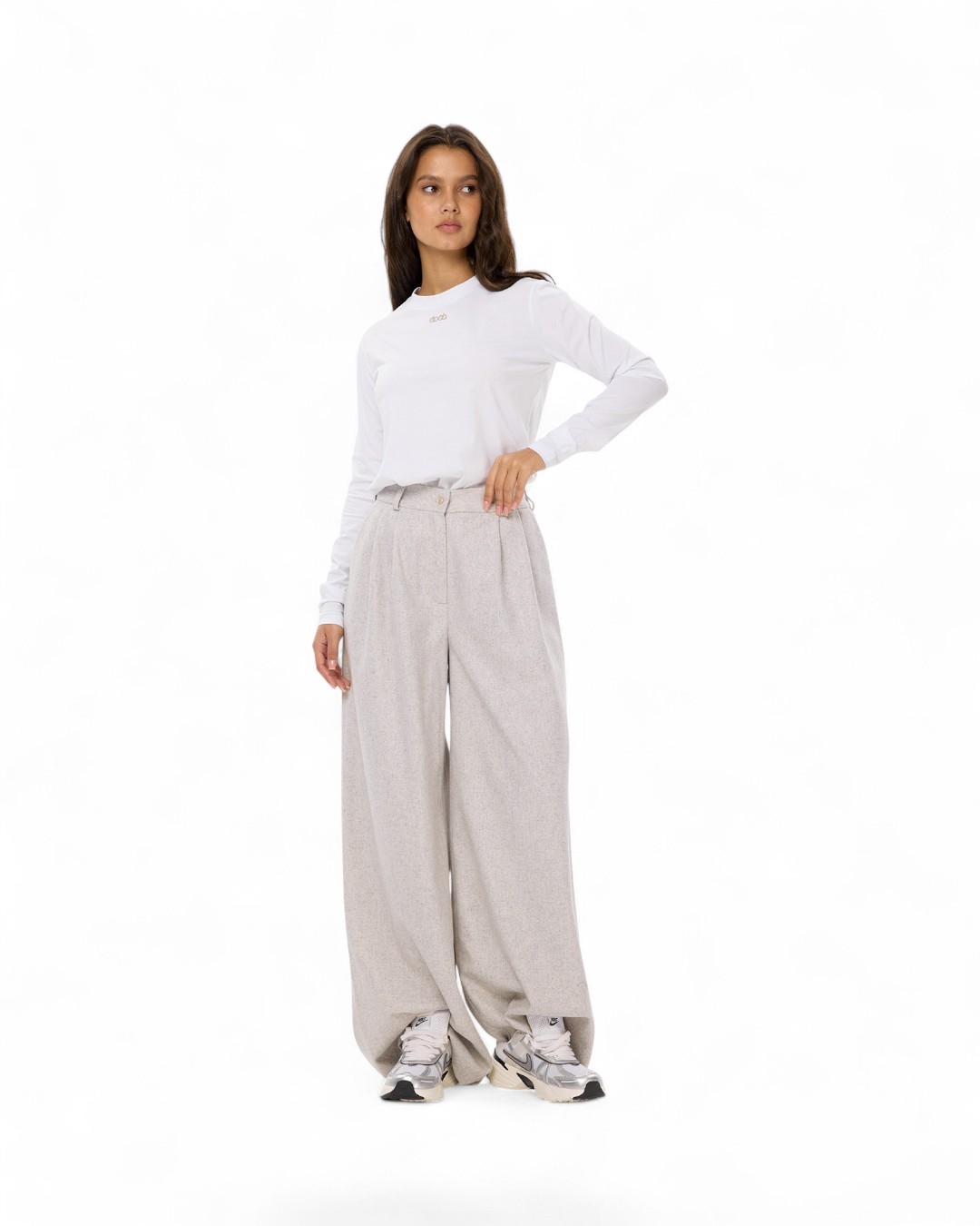 -Брюки с высокой посадкой, двойными складками-защипами и шлевками на поясе;