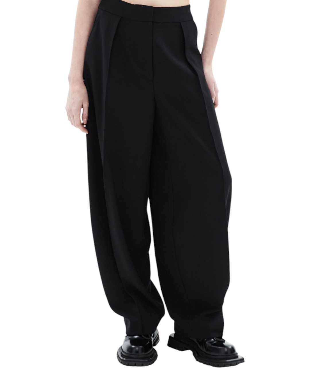 Брюки из плотной матовой ткани премиального качества. Особая конструкция с заложенными складками в поясе обеспечивает идеальную посадку.