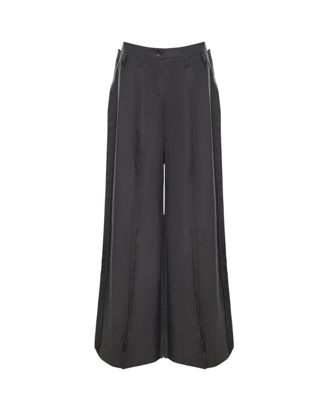 Брюки с широкими штанинами. Отличаются необработанными краями, что придает модели стильную небрежность. Свободный крой создаёт объёмный силуэт, добавляя динамичности и смелости образу.