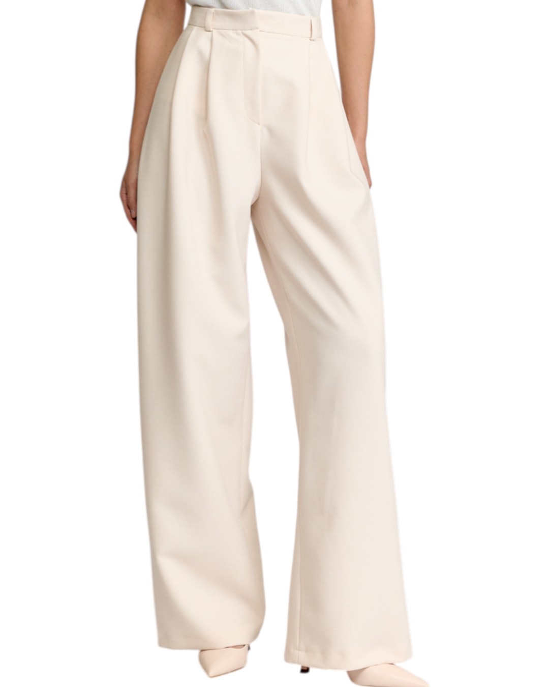 Широкие брюки с двумя складками по талии.
