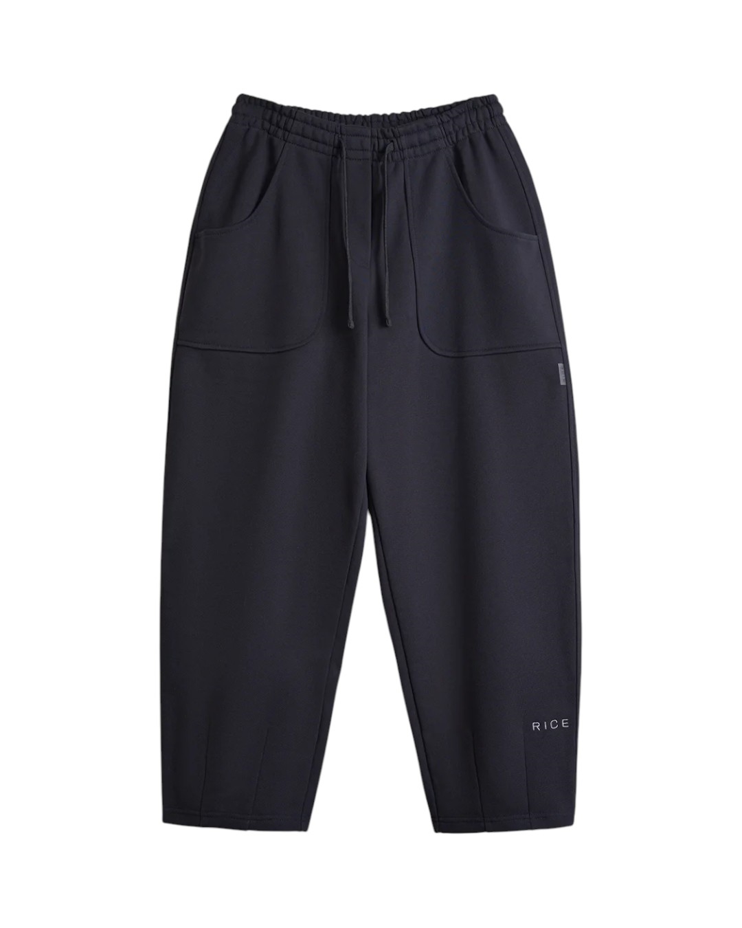 Мягкая структура ткани даёт ощутимую «архитектурную мягкость», а глубокие карманы и широкая линия бёдер формируют утилитарный силуэт, вдохновлённый городскими срезами и паназиатской функциональностью. Минималистичный логотип у нижнего края завершает образ, оставаясь ненавязчивым, но узнаваемым кодом RICE. Брюки собирают в себе комфорт, спокойную силу и визуальную чистоту.
