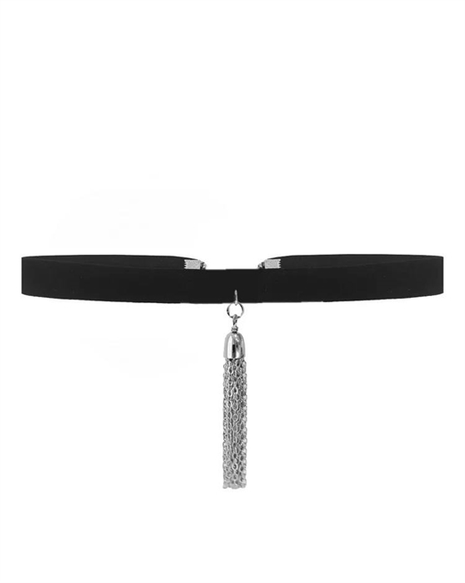 Чокер выполнен из бархатной ленты, декорирован кисточкой.