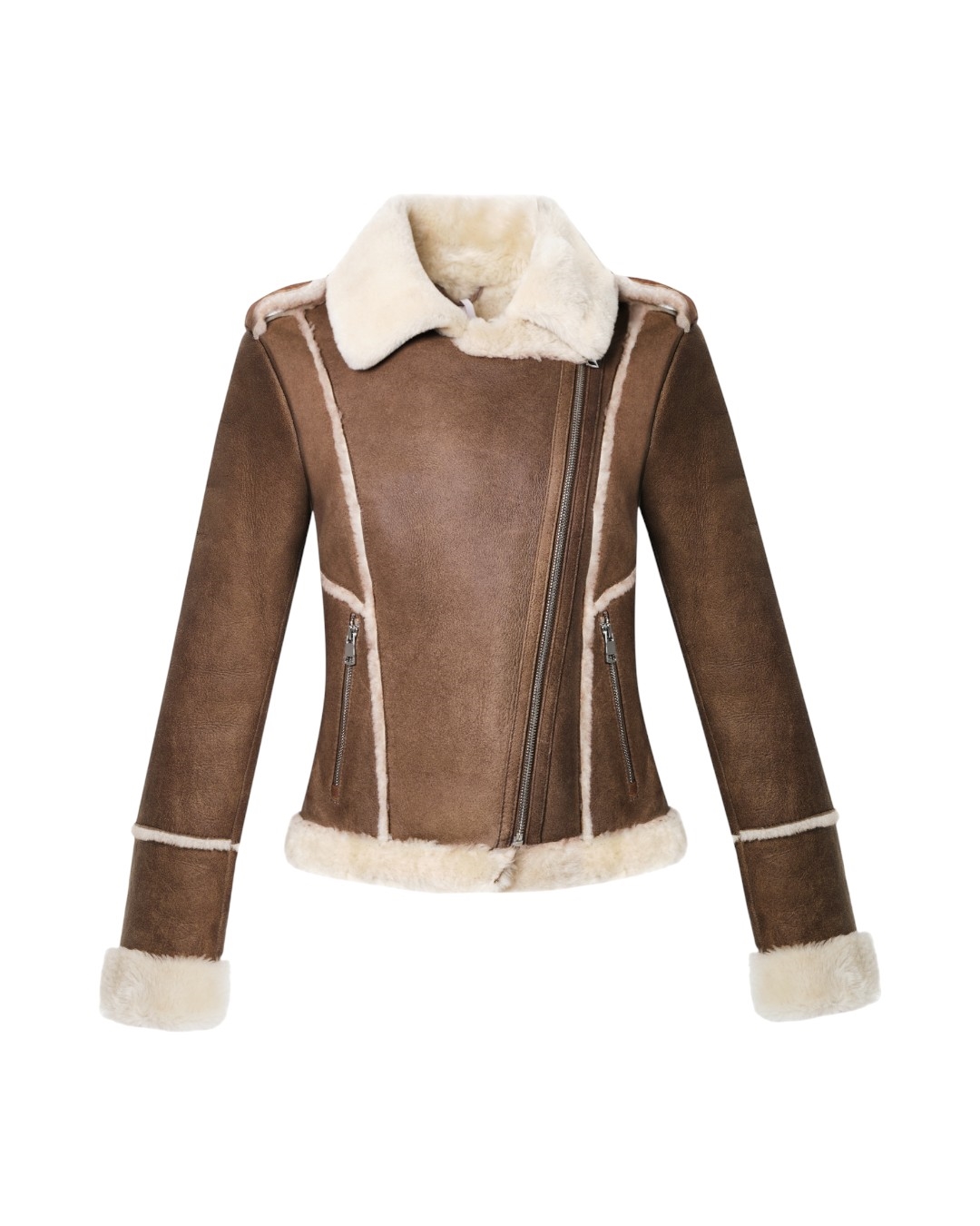 Укороченная дублёнка из 100% овчины с роскошным воротником из натуральной лисы. Асимметричная молния подчёркивает современный характер модели, а меховая отделка по краям добавляет объёма и выразительности. Тёплая, плотная и при этом пластичная — эта модель обеспечивает комфорт в холодный сезон и легко становится центром образа.