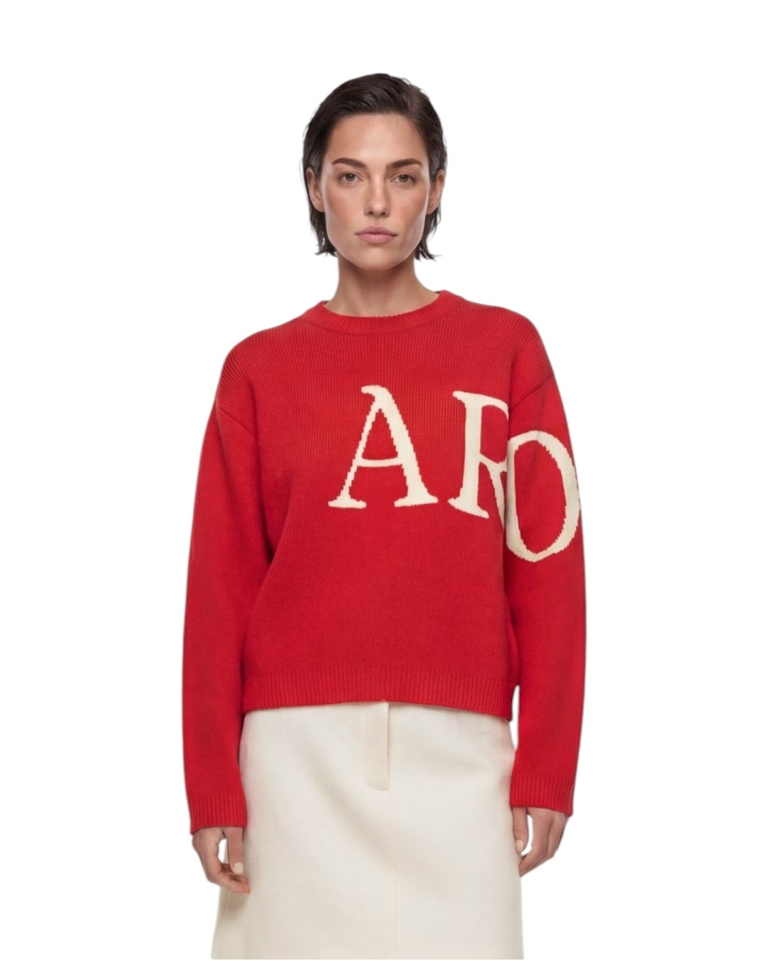 Джемпер-бестселлер иронично обыгрывает название бренда — логотип Around «обнимает» вас, останавливая взгляды окружающих с желанием прочитать надпись.