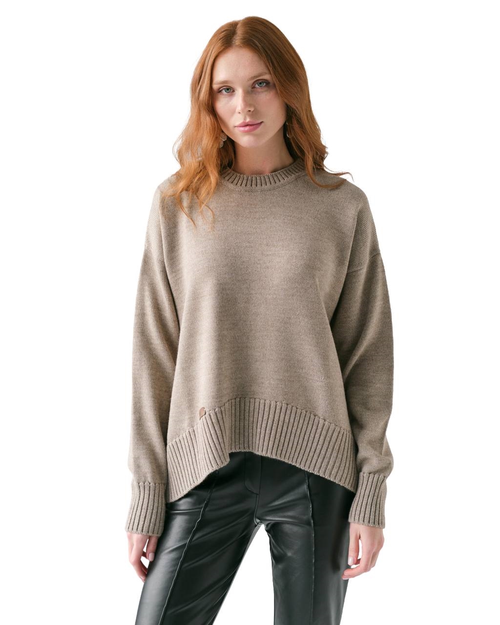 Джемпер со слегка удлиненной спинкой и аккуратной аркой спереди.