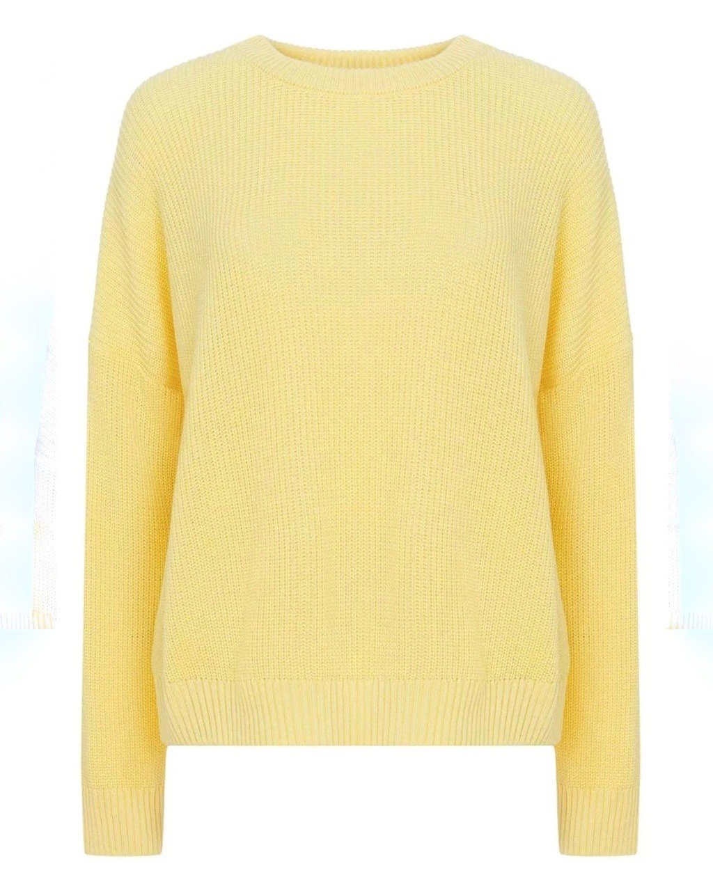 Джемпер фактурной вязки оверсайз кроя в базовом оттенке. Круглый вырез, эластичные резинки на манжетах и по краю изделия.