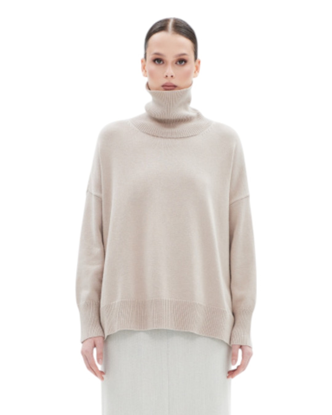 Джемпер вязаный из шерсти. Модель с длинными рукавами и высокой горловиной. Чистый силуэт и мягкая текстура.
