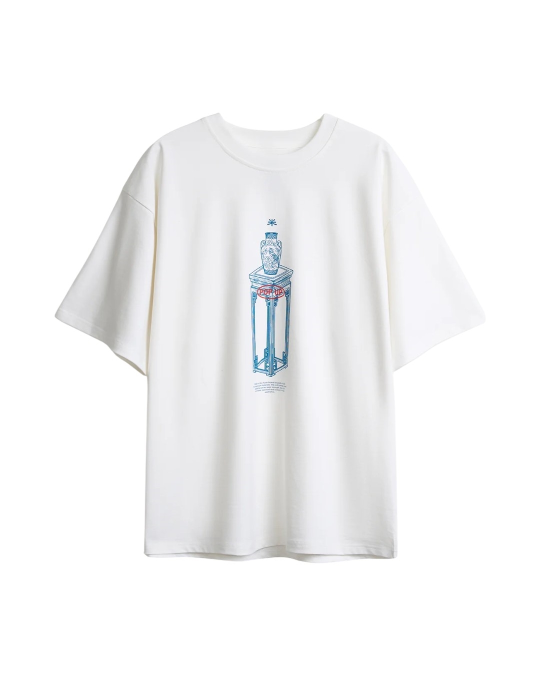 Эта ваза — центральный объект нашего корнера в Цветном. Китайская форма, тонкая роспись и высокая азиатская тумба создают символ спокойствия, который встречает гостей весь месяц нашего pop-up. Мы перенесли её на футболку как памятный мерч этой временной точки присутствия RICE. Это визуальный знак момента и места: когда паназиатская эстетика бренда становится частью пространства Цветного.