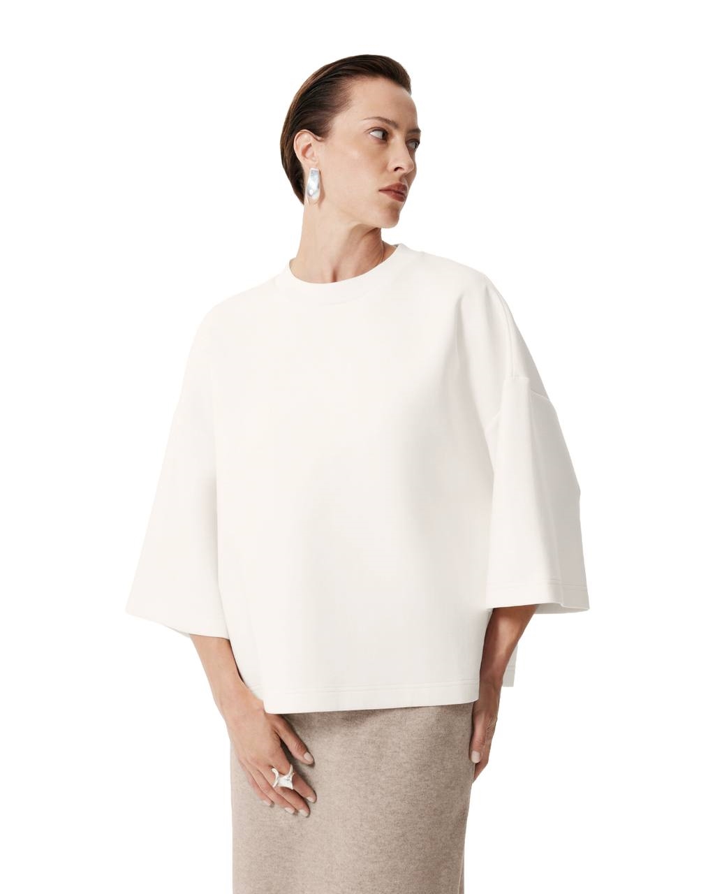 Блузка силуэта оверсайз со спущенным плечом и рукавами до локтя, выполненная из гладкого матового интерлока с преимущественным содержанием хлопка, — бестселлер GLVR. Минималистичный дизайн модели полностью соответствует духу времени и ритму жизни современной женщины, которой всё труднее делить одежду на повседневную и нарядную. В комплекте с блузкой можно провести время в офисе, встретиться с друзьями, посетить светское мероприятие, поужинать при свечах… Лаконичную, стильную, элегантную вещь можно красиво дополнить аксессуарами из серебра, натуральной кожи.