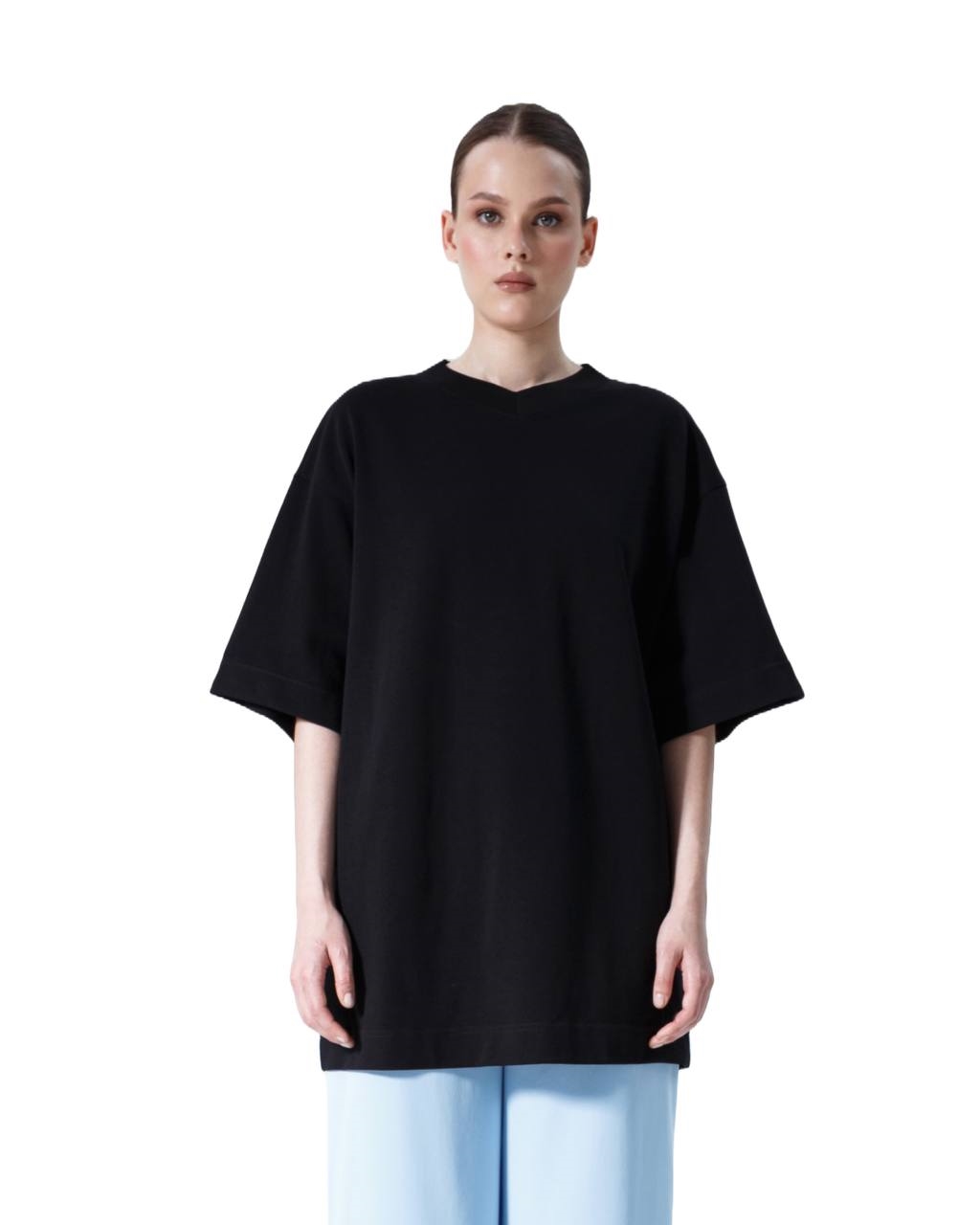 Оверсайз футболка из плотного хлопка с горловиной в форме буквы V.