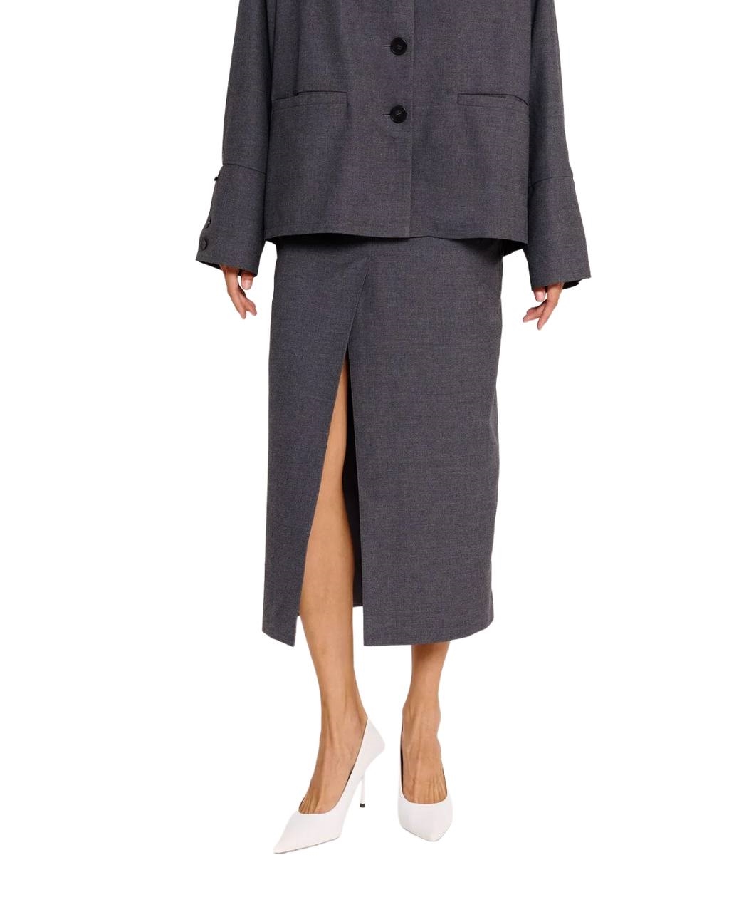 Юбка миди из тонкой костюмной ткани с аккуратным разрезом… спереди! Разве у разрезов есть правила местонахождения? Такая наша смелая классика, которая переворачивает привычное представление о деловой элегантности.
