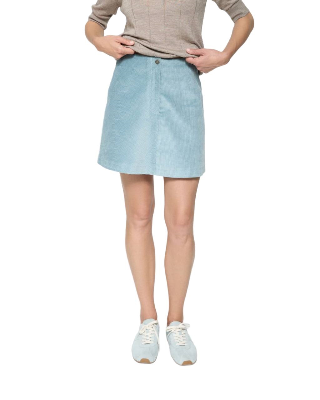 Юбка-мини трапецевидной формы сшита из хлопкового вельвета в крупный рубчик, на ощупь напоминающего бархат.