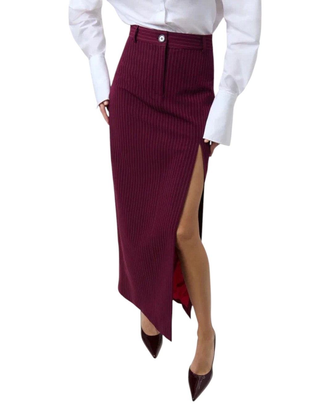 Юбка макси из костюмной ткани в полоску с разрезом сбоку