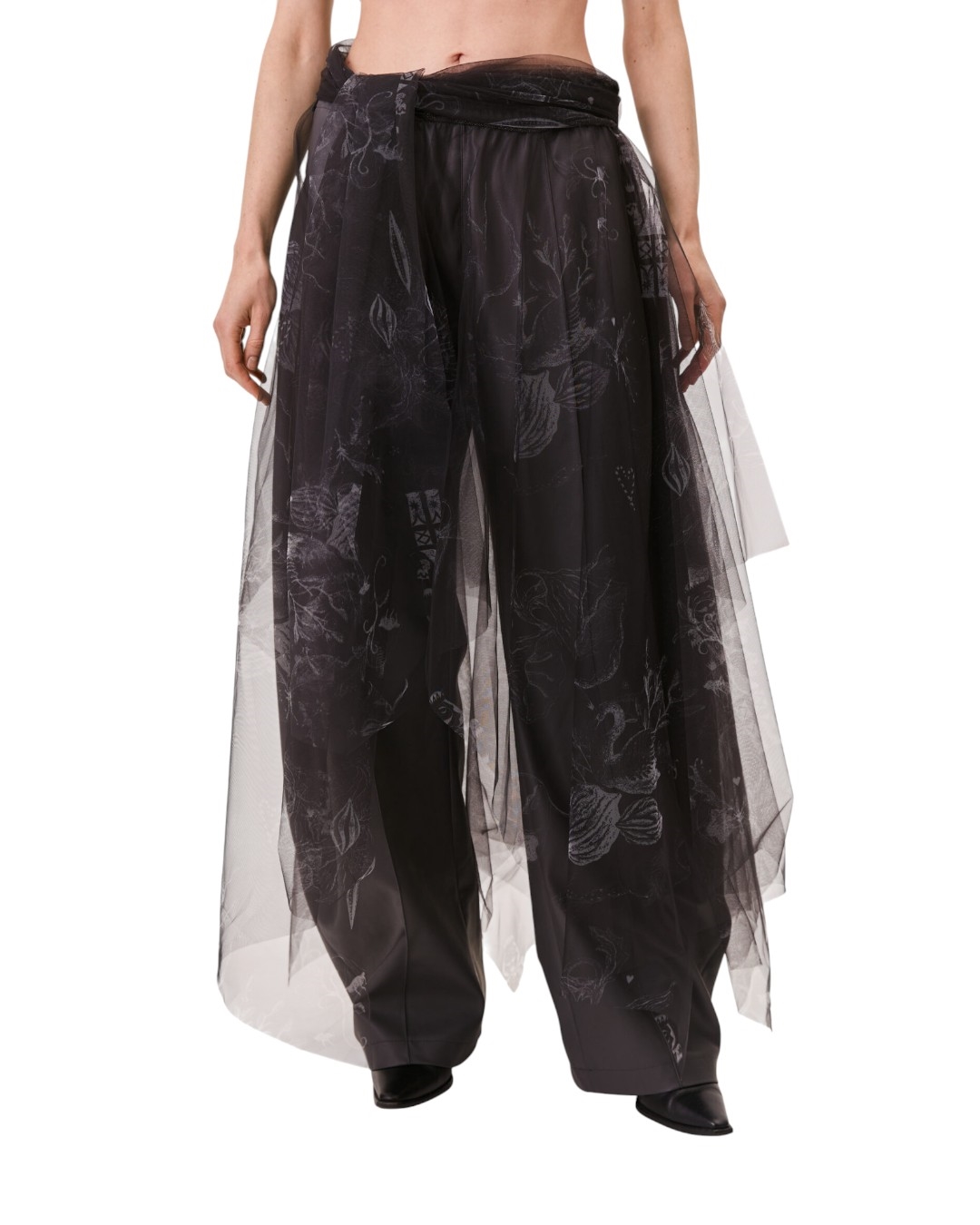 Юбка из фатина А-силуэта с авторским принтом "ЩЕЛКУНЧИК". Ассиметричная модель с поясом-завязкой, без подклада.