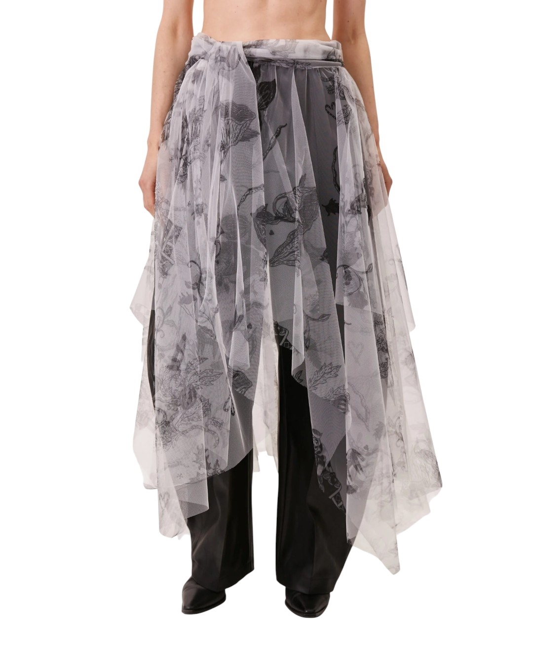 Юбка из фатина А-силуэта с авторским принтом "ЩЕЛКУНЧИК". Ассиметричная модель с поясом-завязкой, без подклада.