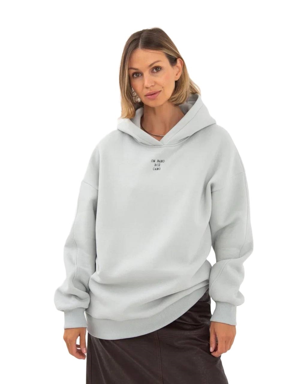 Утеплённый худи из футера с надписью «OM NAMO ВСЕ САМО»
