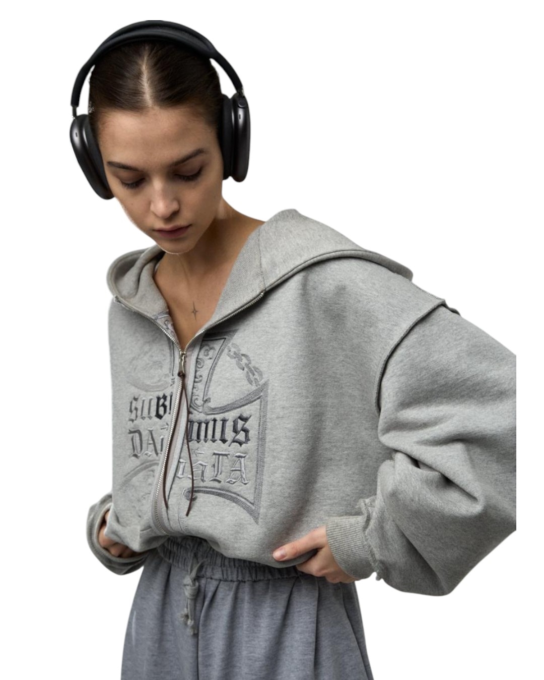 Худи X с вышивкой креста на груди — серый минималистичный силуэт из премиального хлопка с аккуратными вывернутыми швами. Утончённая вышивка добавляет характер и современный акцент к повседневному образу.