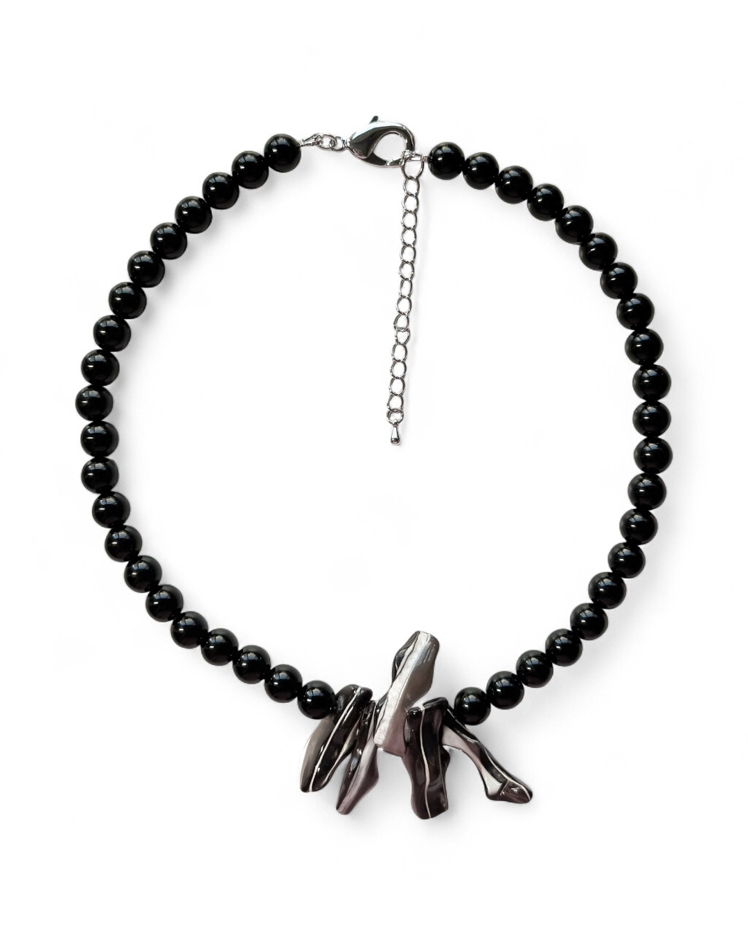 Колье из черного агата с перламутром