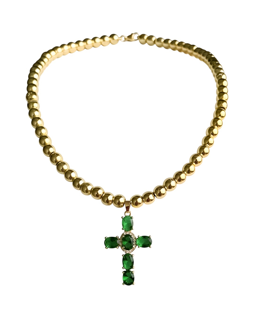 Колье из позолоченного гематита с зеленым крестом
