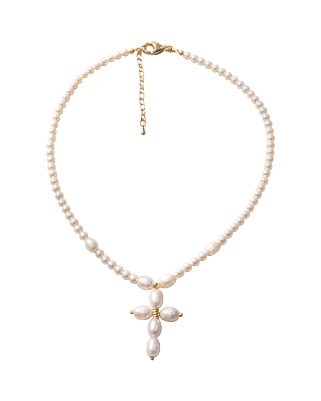 Колье из барочного жемчуга и жемчуга "Майорка" с подвеской "крест" из жемчуга