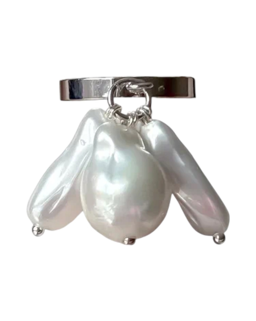 Кольцо в серебре, тонкое с тремя камнями жемчуга "Майорка"