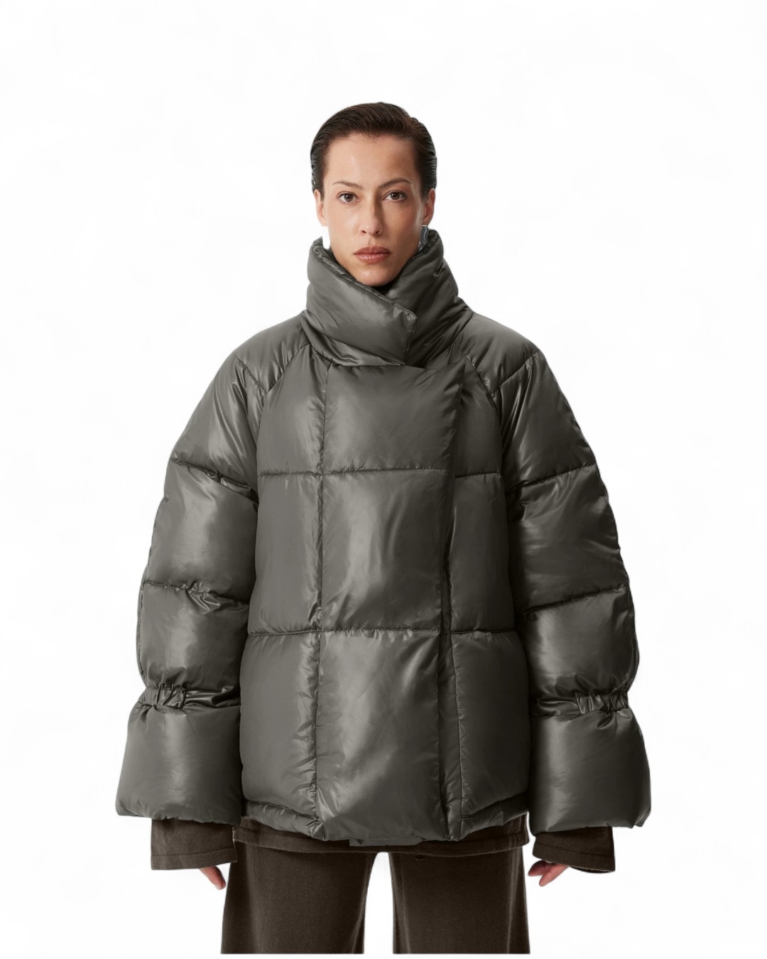 Стеганая куртка на искусственном пуху — прекрасный вариант элегантной верхней одежды, в том числе для автоледи! Благодаря трендовому оливковому цвету, который очень красиво выглядит на плащовке с мокрым блеском, куртка привлечёт женщин, предпочитающих свежие небанальные решения! Английский воротник и асимметричная застёжка придают куртке лаконичность и благородство классики. Рукава-реглан, завершённые лёгким воланом, создают О-образную форму, подчёркивающую плавность, мягкость, женственность силуэта. Важная деталь: при необходимости лацкан воротника можно поднять и зафиксировать на полочке, не допустив продувания. Куртка застёгивается на внутренние кнопки. На подкладке куртки расположен вертикальный карман-листочка. Карманы в боковых швах обеспечивают комфортную эксплуатацию. Куртка имеет внутренние утяжки по нижнему краю.