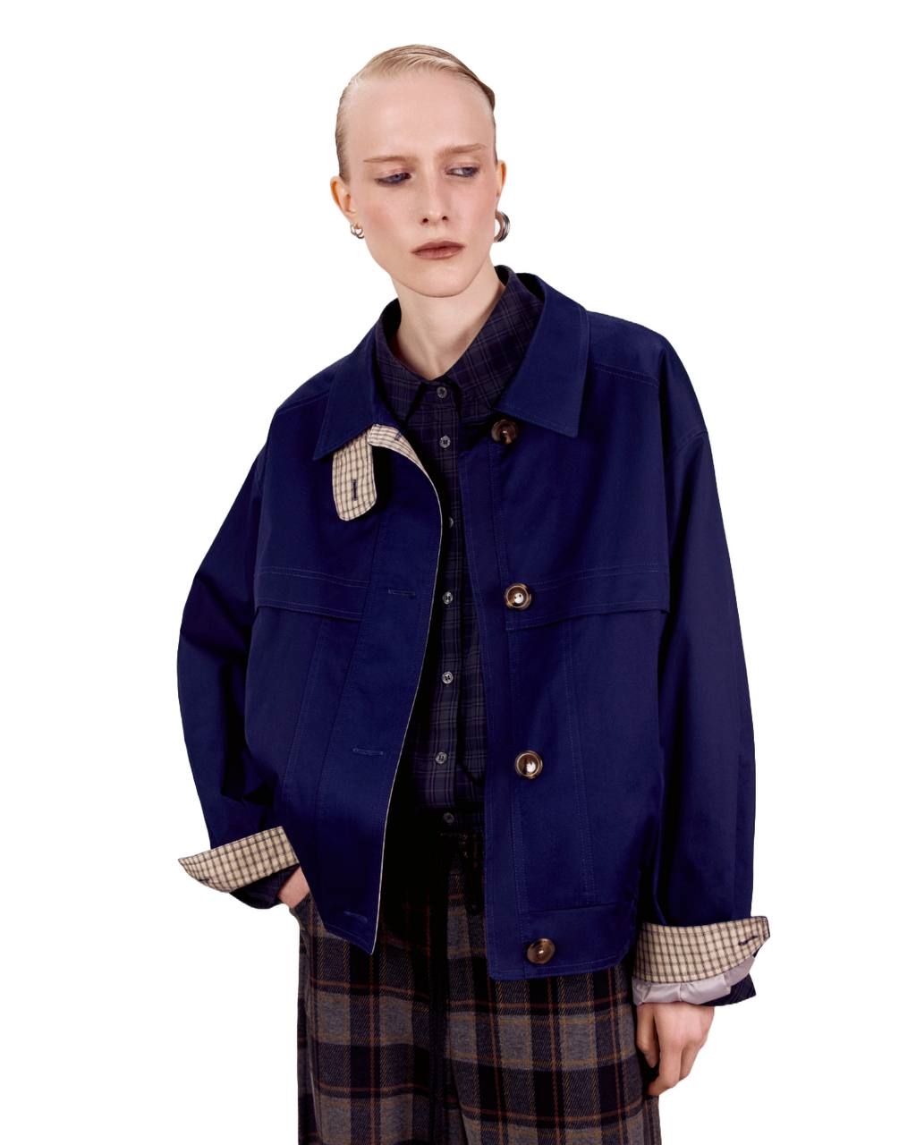 Куртка ЯНИС выполнена из ветрозащитного текстиля в базовых оттенках. Широкая резинка по низу, глубокие карманы, отложной воротник, манжеты декорированы клеткой. Такая куртка-ветровка гармонично смотрится с любым низом будь то брюки, юбка или платье. Вы будете выглядеть стильно всегда!