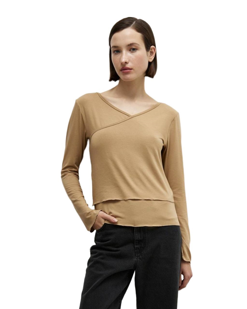 Лонгслив 2-в-1 полностью оправдывает свое название, точнее у него есть даже три способа ношения: два лонгслива друг на друга (с имитацией запаха) и каждый по отдельности, приоткрывая то одно, то другое плечо и выбирая подходящую длину.