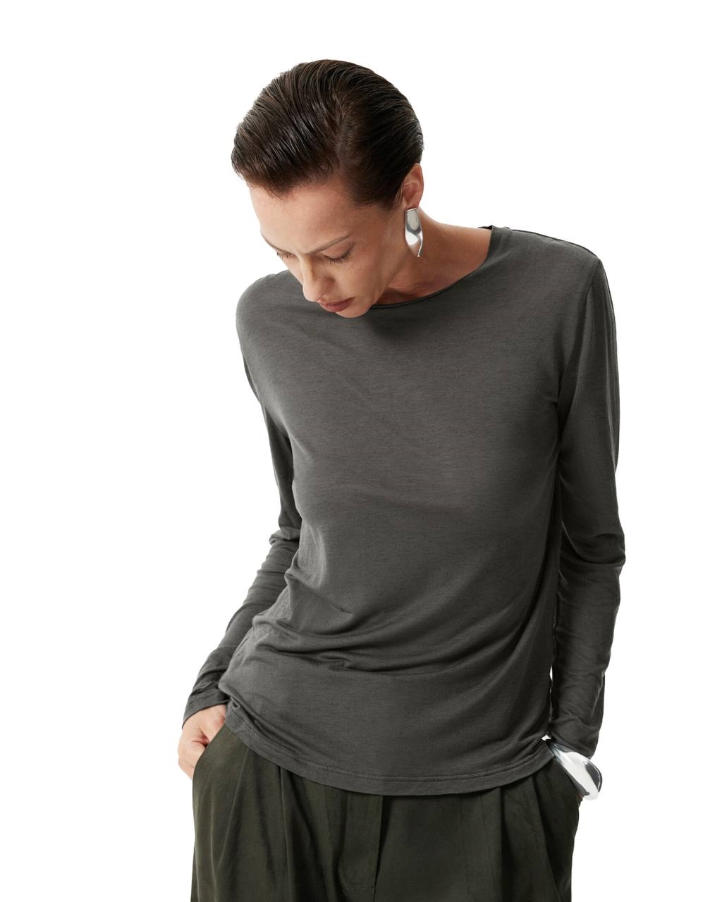 Тонкий лонгслив полуприлегающего силуэта — идеальная базовая вещь стильного и функционального гардероба женщины. Прекрасный состав с преобладанием лиоцелла (разновидность вискозы) с шерстью гарантирует мягкость, пластичность, тактильный комфорт. Трендовый цвет, вобравший в себя все оттенки оливки, полыни, шалфея, делает лонгслив важной составляющей и монохромных комплектов, и образов, построенных на контрасте с серым, молочным, фиолетовым, чёрным.