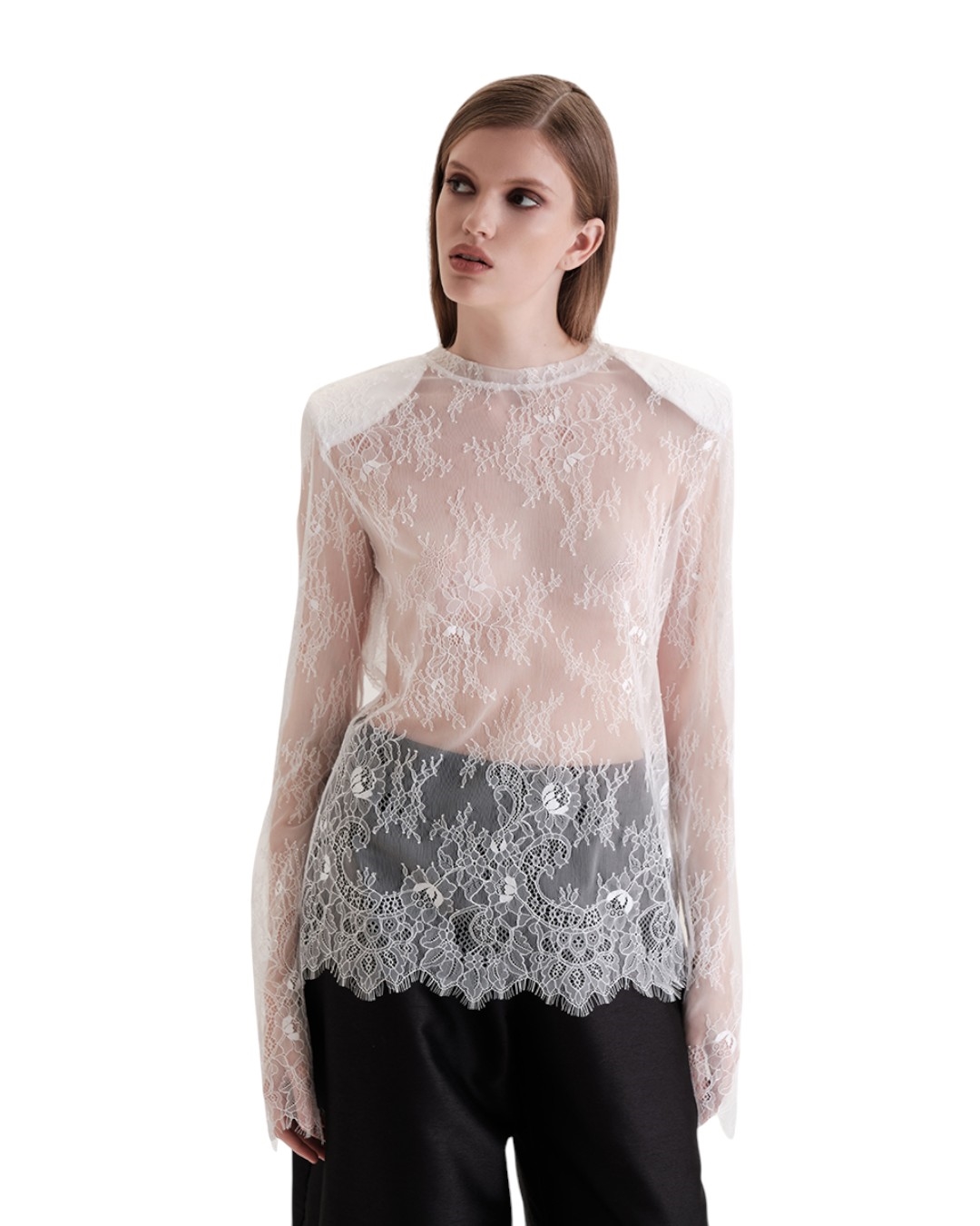 Лонгслив кружевной с плечиками