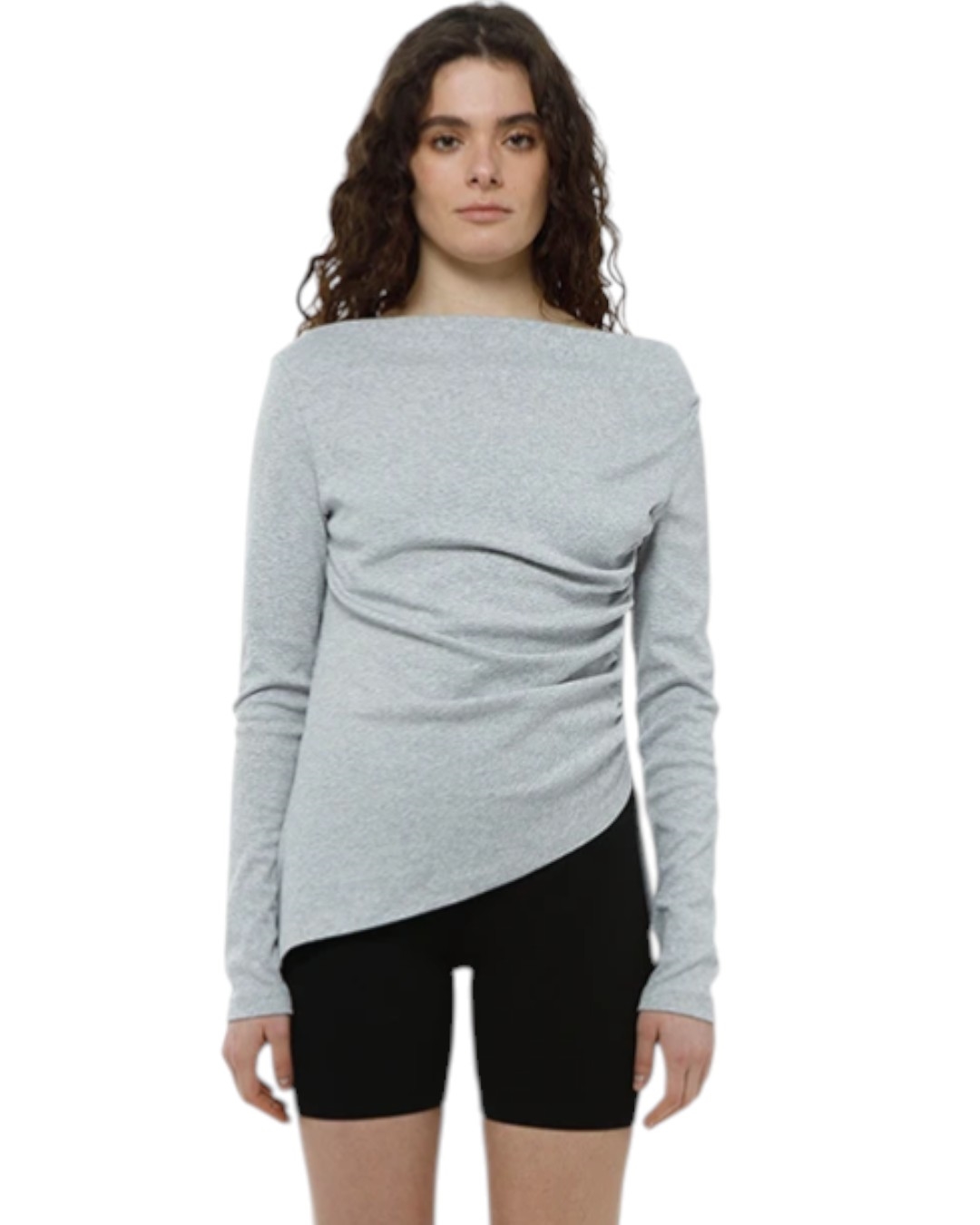 Лонгслив асимметричный облегающего кроя , со сборкой на одном боку и разрезом
