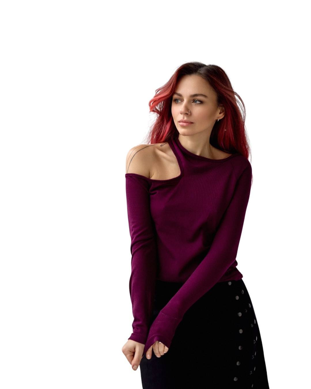 Лонгслив с асимметричным верхом и полностью открытым плечом из 100% шерсти. Асимметричный низ с удлиненной спинкой позволяет красиво носить его на выпуск. Ткань тонкая, но за счет шерсти очень теплая и тактильно комфортная.