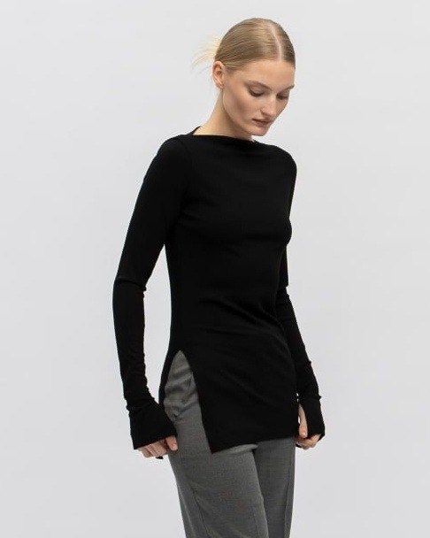 Лонгслив с длинным рукавом и разрезами на рукавах, разрез сбоку на одном боку