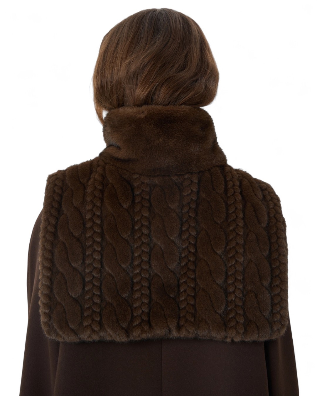 Меховая манишка из фактурного меха — это не только стильная деталь, но и источник комфорта осенью и зимой. Она может заменить шарф и стать дополнительным слоем для создания теплого и уютного образа в холодное время года.