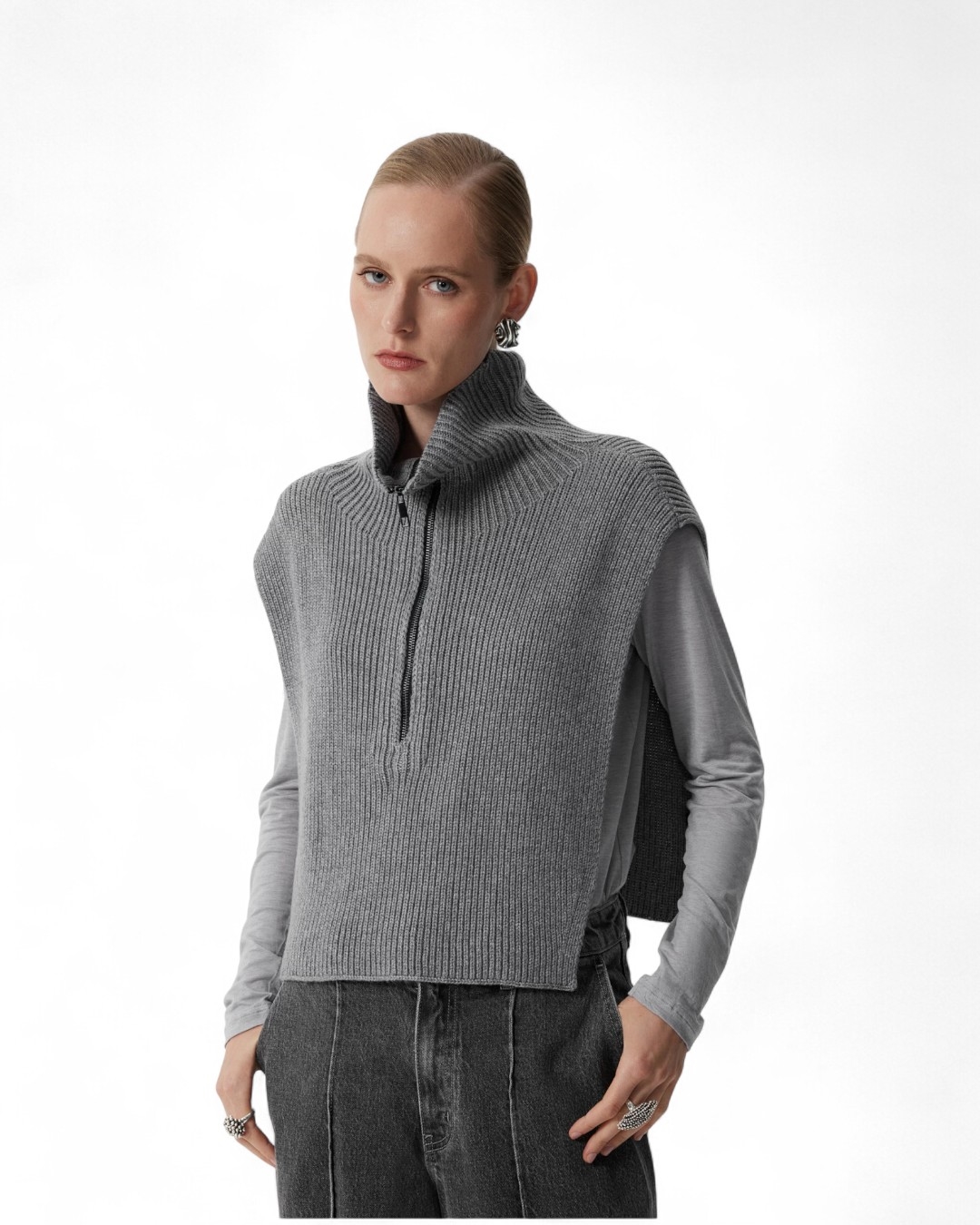 Вязаная манишка с высокой горловиной не первый год будоражит воображение желающих отойти от классических шарфов и снудов, объединив в одной вещи тепло и уют, удобство и простоту в эксплуатации, возможность создать образ с нотками спортивного стиля. Манишка на молнии выполнена из смесовой меланжевой пряжи с участием ангорской шерсти. Именно она делает манишку очень мягкой и пушистой, создавая комфортный тактильный контакт с кожей. Длина манишки до талии обеспечивает существенный защитный слой, что очень актуально в осенне-зимний период.
