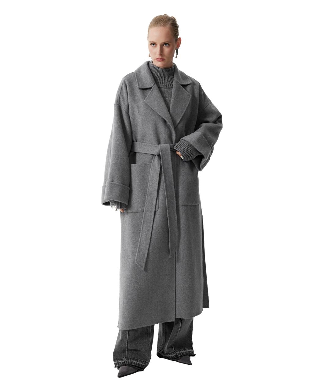 Серое пальто с английским воротником длины мидакси (среднее между миди и макси), выполненное из двусторонней двуслойной меланжевой пальтовой ткани-бибер, состоящей из высококачественной шерсти мериноса и смесовых волокон, — больше чем просто одежда! Это шик и комфорт повседневного городского стиля, иллюстрация вкусовых предпочтений, внутреннего мира, образа жизни. Каждый экземпляр такого пальто уникален и требует высочайшего уровня швейного мастерства. Как и все изделия из двусторонних тканей, пальто не имеет подкладки. Все швы, в том числе срезы по краю изделия, выглядят аккуратными, чистыми, закрытыми, придающими пальто премиальный вид. Пальто не имеет застёжки. Оно закрывается на модный запах, фиксирующийся поясом. Крупные накладные карманы создают удобство в эксплуатации вещи. Высокие разрезы в боковых швах способствуют комфортному шагу, формируя красивый шлейфовый эффект при движении. Очень мягкое, пластичное, лёгкое, оно не выйдет из моды и не утратит актуальности долгие годы. Пальто станет отличным приобретением в преддверии осеннего сезона, способным подчеркнуть элегантность, интеллигентность, культуру в подаче образа женщины.