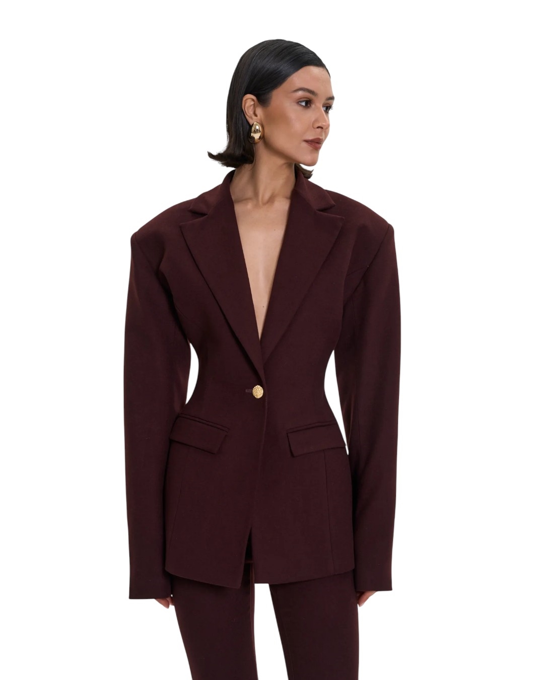 Пиджак приталенный с объемными плечами