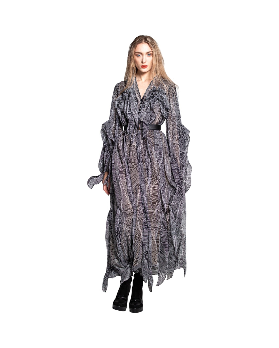 Шифоновое платье в стиле бохо, с рельефным декором. Длинное, струящееся, оно обволакивает фигуру и при этом дарит невероятную свободу движений