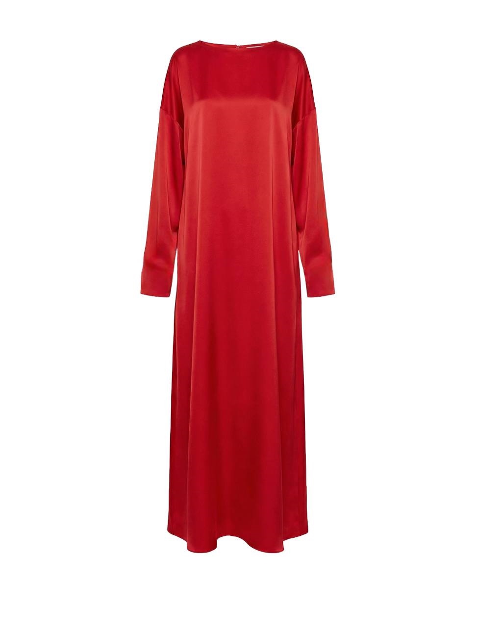 Плотная, струящаяся, шелковистая ткань насыщенного оттенка создаёт прямой силуэт и мягко подчеркивает фигуру при движении. Конструкция платья позволяет носить его или вырезом назад, открывающим спину, или с глубоким декольте.