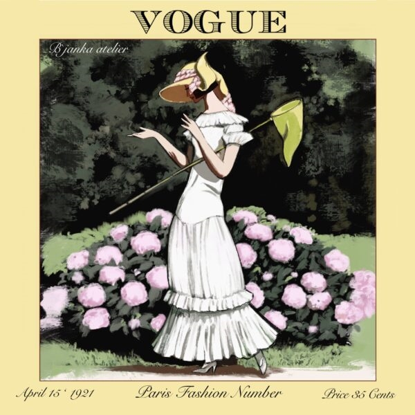 Шелковый авторский платок из коллекции «Vogue. Golden 20th». Коллекция вдохновленная так называемыми «Золотыми двадцатыми» прошлого столетия, когда бурно развивалась культурная и социальная жизнь после Первой мировой войны. Одним из символов этого периода стал журнал «Vogue». Коллекция воссоздает обложки легендарного журнала из этой эпохи. Натуральный шелк малбери, нежный и струящийся.