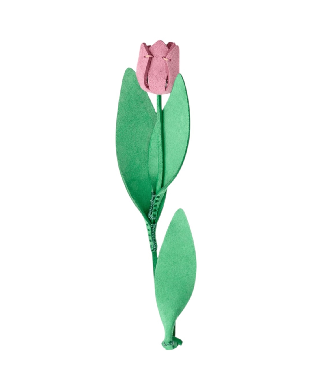 Подвес в форме тюльпана выполнен из натуральной замши. Мягкий бутон, тонкий стебель и плавные листья собраны вручную — поэтому он выглядит почти живым. Фактура придает цветку естественность и легкий объем.